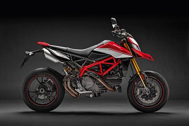 하이퍼 모타드 시리즈도 업데이트를 통해 더욱 경쟁력을 갖추었다. 새로운 이름은 하이퍼모터드950이지만 배기량은 기존과 동일하다. 최고출력은 4마력 높였고 저속토크 또한 높이고 무게는 1.5kg 줄였다. 주간 주행등이 추가된 새로운 디자인의 헤드라이트와 비크를 장착했다. IMU에서 얻어지는 기울기 데이터를 반영하는 코너링 ABS와 트랙션 컨트롤을 기본탑재하며 윌리 컨트롤을 탑재한다. ABS 작동 중에도 리어 브레이크 락을 이용해 슬라이드를 할 수 있다. 퀵시프트 시스템은 옵션사양이다. SP버전은 올린즈 서스펜션을 장착하고 차고를 높인 스페셜 모델이다. 마그네슘 단조 휠과 퀵시프트가 기본사양으로 제공된다.