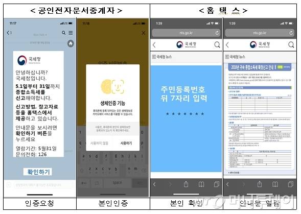 종합소득세 신고대상자 중 복식부기 의무자와 비사업자는 올해 처음으로 ‘신고 안내문을 스마트폰으로 조회’해 신고대상 소득종류․신고일정을 확인할 수 있다. 모바일 신고안내문 조회 대상자는 복식부기의무자 및 비사업자 약 397만 명으로 스마트폰으로 종합소득세 신고안내 문자를 수신하고 안내문(PDF)도 바로 열람 할 수 있다. 모바일 신고안내문은 공인전자문서중계자를 통해 4월29일부터 순차적으로 발송된다.