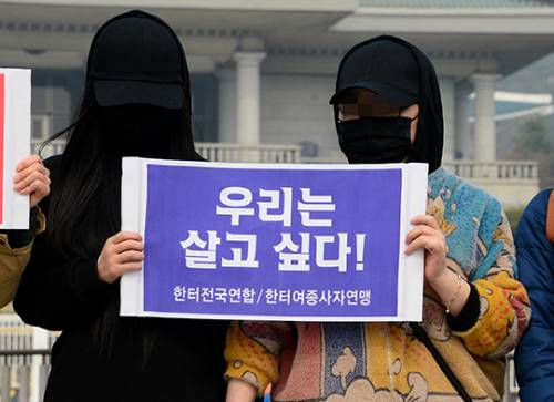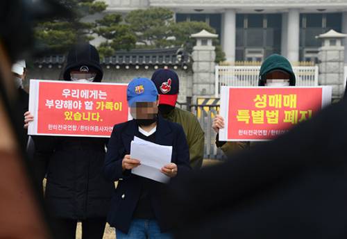 대책위 소속 오모씨는 "8년 동안 부당한 조건에서도 오직 가족을 부양하고자 성매매 일을 선택했고, 지금 이 자리에 섰다"며 "이곳을 벗어나지 못하는 현실이 가슴 아프다"고 했다.