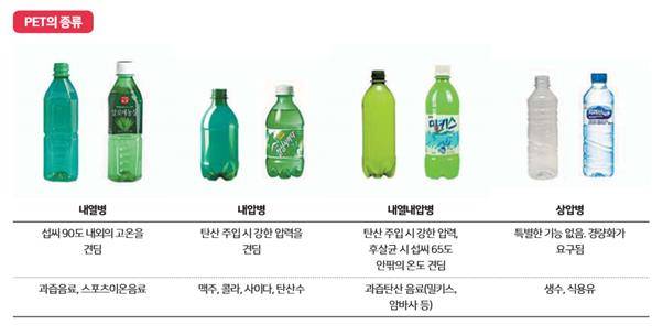 페트병은 보통 내열, 내압, 내열압, 상압병으로 나뉜다. 이 중 내열병은 말 그대로 고온을 버텨내는 힘이 우선이다. 상대적으로 미생물에 취약한 과즙주스나 스포츠 이온음료는 고온 살균해 뜨거운 상태로 페트병에 담긴다. 일반적으로 페트병은 75도가 되면 물렁해지지만 내열병은 90도 안팎의 온도에서도 용기 변화가 없도록 단단하게 제작된다.
