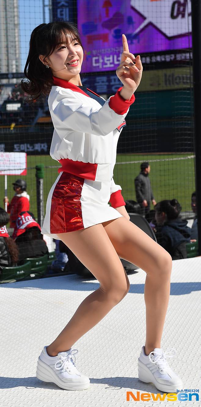 이날 롯데 치어리더 안지현이 화려한 율동을 선보이고 있다.