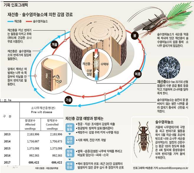 ![해군 진해기지사령부 시설 전대 군무원이 9일 경남 창원시 진해구 진해 군항 내에서 재선충병 예방을 위해 소나무에 주사를 주입하고 있다. [해군 제공=연합뉴스]](https://img4.daumcdn.net/thumb/R658x0.q70/?fname=https://t1.daumcdn.net/news/201904/13/joongang/20190413120058971pjeg.jpg)