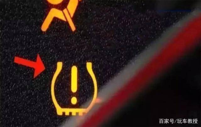 느낌표가 있는 "U"형태의 이 경고등은 타이어 압력이 낮아졌을 때 표시가 된다. 계속 켜져 있다면 주행을 하지 않는 것을 추천한다. 엔진을 끄고 어느 쪽 타이어가 문제가 있는지 확인해야 한다. 운전 중 표시가 켜졌다면 타이어 하나에 문제가 생긴 경우로 반드시 도로 한쪽에 차량을 대고 확실하게 체크해야 한다.
