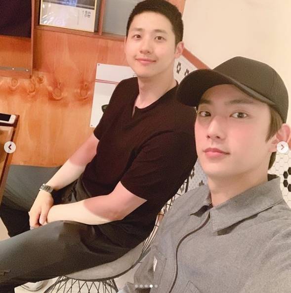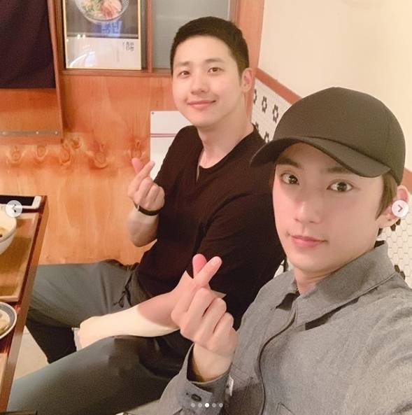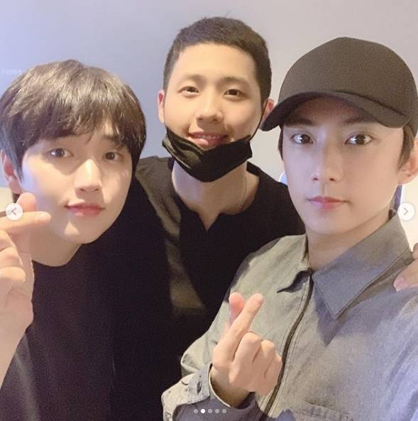 B1A4 신우, 휴가 중 근황..산들 공찬과 조우 "행복"[SNS★컷]