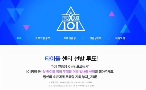 | ▲ 엠넷 < 프로듀스X101 >이 지난 15일 타이틀 센터 선발 투표를 기습적으로 진행했다. 이를 통해 15명의 후보 연습생이 공개되어 관심을 모았다.(웹페이지 캡쳐) |