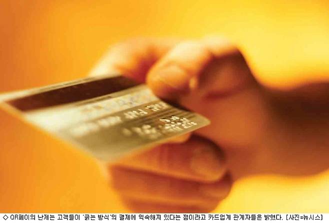 카드업계 관계자는 "카드를 꺼내 건네기만 하면 결제 과정에 적극적으로 참여하지 않아도 되는 카드 대신 직접 앱을 열어 결제하고 과정을 확인해야 하는 QR페이를 사용하도록 하려면 고객들이 QR코드가 더 편하다는 인식을 몸소 체득해야 한다"고 설명했다.