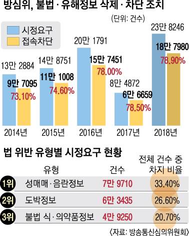 방송통신심의위원회 관계자는 “합법적 사이트가 아니라 국내법을 위반하는 명백한 불법 사이트에 대한 차단”이라면서 “성인의 알권리와 관련 없다”고 말했다. 또 일각에서 제기되는 워마드·일베 사이트 차단에 대해선 “친목·정보 공유를 주목적으로 운영하는 사이트라 문제가 되는 개별 게시글 단위로 심의·관리한다”고 밝혔다.
