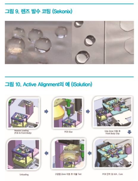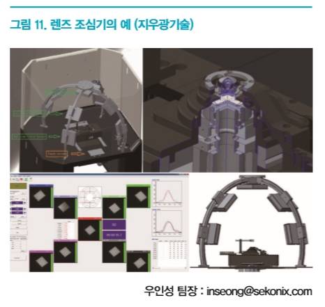 각 기업에서는 단지 보여주기 위한 후방카메라와는 다른 객체검출용 카메라(Sensing Camera)를 위해서 다양한 방법을 검토 및 시행중이며, 대표적인 예가 렌즈와 이미지센서의 Alignment를 자동 설비를 이용하여 진행한다(Active Alignment). Active Alignment는 여러개의 로봇 팔을 이용하여 진행되며, 목표하는 카메라 영상 품질에 따라 6축 조정방식에서 14축 조정방식까지 다양하다.