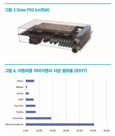 국내 자동차 제조사는 2015년 12월 출시된 EQ900(해외명 G90)부터 후방카메라 및 서라운드뷰용 카메라에 100만 화소 HD급 영상을 사용하기 시작하였으며, 이후 고급차부터 점차 100만 화소 이미지 센서를 적용 중에 있다. 현재 영상기반 ADAS(첨단운전자지원시스템)의 70% 이상 점유하고 있는 모빌아이의 제품도 100만 화소 이미지 센서 기반의 시스템이다.