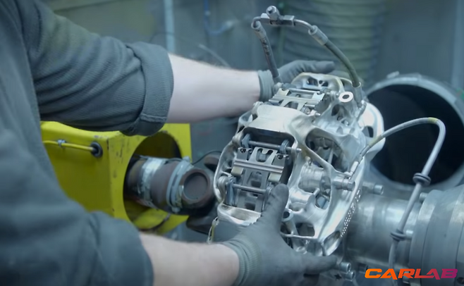 출력이 완료된 캘리퍼는 섭씨 700도와 100도를 넘나드는 열처리 과정을 반복한 후 완성된다. 이후 각종 화학처리까지 완료하는데 11시간이 걸린다. 최종적으로 티타늄 캘리퍼 1개를 완성하는데는 꼬박 2일하고도 8시간이 걸리는 셈이다.