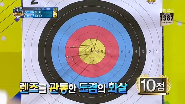 트와이스 쯔위와 세븐틴 도겸이 양궁에서 4연속 10점을 기록했다.