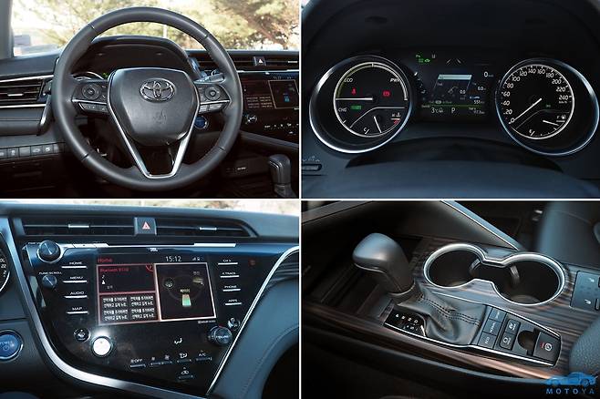 스티어링 휠은 중형 세단의 성격에 알맞은 사이즈와 각도, 그리고 림 굵기를 지니고 있다. 든든하게 감겨오는 그립감이 인상적이다. 계기반은 하이브리드 시스템 특유의 동력게이지가 적용되어 있고, 별도의 회전계는 지원하지 않는다. 계기반 중앙에는 다기능 디스플레이가 위치하여 다양한 정보를 계기반에서 확인할 수 있다. 인포테인먼트 시스템은 토요타의 최신 시스템이 적용되어, 간편한 사용 환경을 제공한다. 홈 화면에서는 설정된 여러가지 정보를 하나로 모아 볼 수 있다. 오디오 시스템은 JBL의 것을 사용하며, 무난한 수준의 음향품질을 경험할 수 있다.