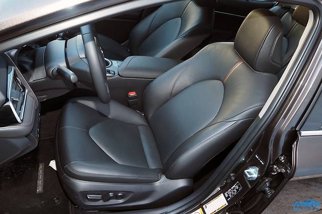 캠리의 공간은 기본적으로 가족용 중형 세단이 반드시 가져야 할 미덕 중 하나인, ‘넓은 실내 공간’을 구현했다. 하지만 공간에 대한 접근법의 측면에서는 이전과는 다른 방향성을 제시하고 있다는 점이 흥미롭다. 단순히 공간을 넓히기만 하는 개념을 넘어, 탑승자가 아늑함을 느낄 수 있는 공간 연출을 지향하고 있기 때문이다. 캠리는 여타의 세단에 비해 더 낮은 벨트라인과 더욱 크게 설계된 창 구조, 그리고 더 낮은 바닥 높이를 지니고 있다. 이 덕분에 지붕의 높이가 낮은 편인데도 불구하고 실내는 상당한 개방감을 갖는다.