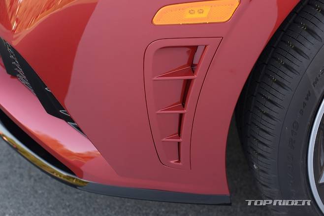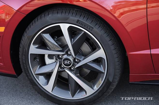 후면에서는 블랙 하이그로스 마감된 범퍼 하단부와 신형 아반떼 스포츠와 유사한 노출형 싱글 머플러팁이 확인된다. 또한 블랙 컬러의 사이드 스커트를 적용해 스포티함을 강조했다. 19인치 휠과 245/40R19 규격의 피렐리 P-zero 사계절 타이어를 적용했다.