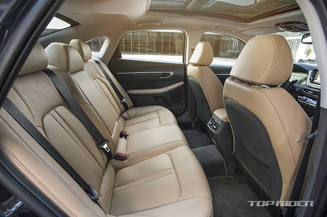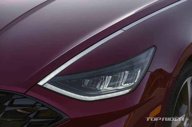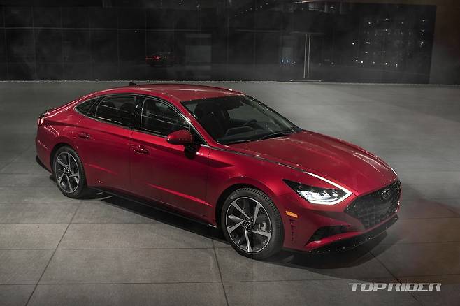 이번에 공개된 신형 쏘나타 1.6 터보는 북미형 모델로 범퍼에 호박색 리플렉터가 추가되고, MFL 타입 LED 헤드램프가 적용되는 등 국내 출시 모델과는 일부 차이를 보인다. 하지만 공격적으로 변한 전후면 범퍼와 디테일, 새로운 패턴의 블랙 그릴은 공통된 요소다.