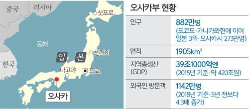 일본 오사카(大阪)는 28·29일 G20(주요 20개국) 정상회의와 2025년 엑스포를 통해 간사이(關西) 지역의 글로벌 경쟁력을 끌어올린다는 계획이다. 간사이는 일본 중서부의 오사카·교토 2개 부(府)와 효고·나라 등 4개 현(縣) 지역을 말한다.