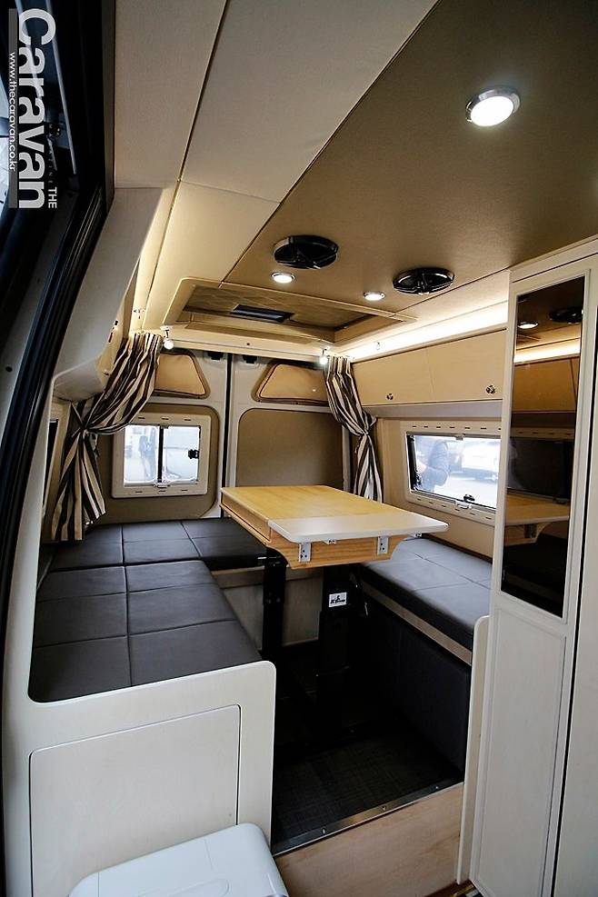 실내의 인테리어와 레이아웃 구성은 다소 평범하다. 대신 침상형으로 활용하거나 리빙룸, 유럽 버전 등 다양한 형태로 변형이 가능하고 팝업을 통해 광활한 실내 전고를 확보할 수 있다.