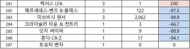 이에 오토뷰도 미국 판매량 동향은 분기별로 정리하며, 기존 1위부터 100위까지 순위 대신 미국에서 판매된 모든 차종(280여 종)의 판매량을 모두 공개하기로 했다.