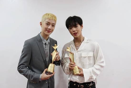 사진 속 라이관린과 박지훈은 각각 트로피를 들고 환한 미소를 짓고 있는 모습이다.