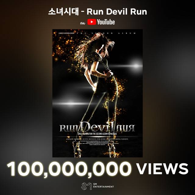 지난 2010년 3월 유튜브 SMTOWN 채널을 통해 공개된 소녀시대 'Run Devil Run' 뮤직비디오는 금일(29일) 유튜브 조회수 1억뷰를 돌파해 소녀시대의 글로벌한 인기를 재입증했다.