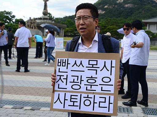 전 목사의 이 같은 행보에 개신교에서는 반발도 거세지고 있다.