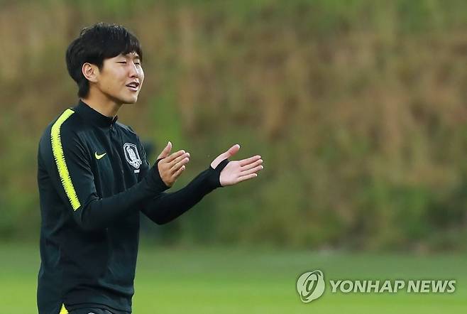 (우치[폴란드]=연합뉴스) 홍해인 기자 = 2019 국제축구연맹(FIFA) 20세 이하(U-20) 월드컵 결승을 앞두고 한국 대표팀 이강인이 13일 오후(현지시간) 폴란드 우치의 팀 훈련장에서 미니 게임을 펼치는 훈련조 형들을 향해 소리치며 박수를 보내고 있다. 2019.6.14