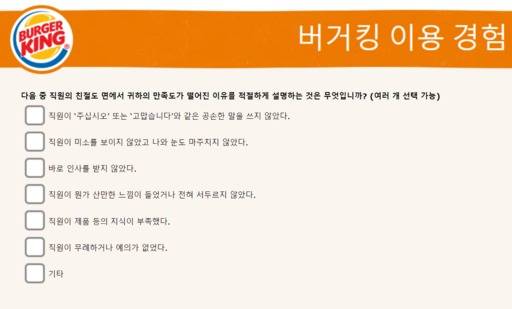최근 유명 패스트푸드 업체 중 한 곳인 KFC 매장을 이용한 은지영(29)씨는 할인 쿠폰을 받기 위해 고객만족도 설문조사를 하다 이 선택지를 보고 의아했다.