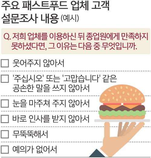 프랜차이즈 패스트푸드 업체가 운영 중인 고객 대상 설문조사가 매장 직원들에 정도가 지나친 감정노동을 조장한다는 비판이 나온다.