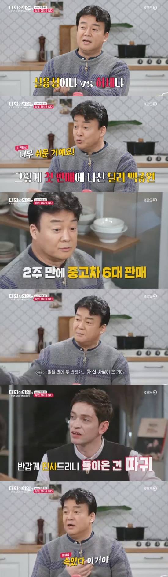 백종원이 대입직전 중고차 판매 아르바이트를 하며 장사 철학이 생겼다고 말했다.