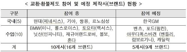 레몬법 도입 의사를 밝힌 브랜드까지 모두 합치면 총 15개 제작사, 25개 브랜드가 참여를 결정했다. 국내 자동차 시장 점유율로 보면 지난해 98%를 차지했던 브랜드가 모두 레몬법을 도입하는 셈이다.