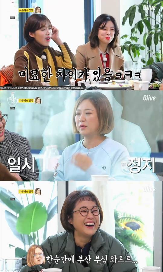 김숙은 “근데 20살 때 개그맨이 돼 서울로 올라왔는데 나도 놀림받았다”고 말했다. 김숙은 “서울에서 선배들이 무엇을 물어봐도 침묵을 지켰다. 놀림 받을 때마다 기가 죽었다”고 덧붙여 방송에 웃음을 더했다. (사진=Olive ‘밥블레스유’ 캡처)