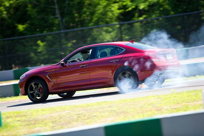 그런데 친한 친구가 G70을 뽑았습니다. 3.3L 트윈 터보 후륜구동 모델. 컬러는 레이싱 그레이, 시쳇말로 시멘트 색이었죠. 타봤습니다. 웬 걸? 사륜구동하고는 다른 차더군요. 사륜구동은 끈적하고 묵직했던 반면 후륜구동은 날렵했습니다. 무거운 V6 엔진에 터보차저를 두 개나 달았는데도 노즈가 빠르고 산뜻하게 움직였습니다. 좁은 앞 타이어 때문에 초반에는 살짝 언더스티어를 내지만 이윽고 머리를 안쪽으로 쭉쭉 밀며 내달렸습니다. 가속도 사륜구동형 대비 한층 날카로웠습니다. 풀가속하면 몸 속 내장이 등 쪽으로 달라 붙는 기분. 이따금 무섭다는 생각이 들었죠. 생긴 것과 달리 악랄함이 있었습니다. 이때 처음으로 ‘G70을 사 볼까’하는 생각을 했습니다.