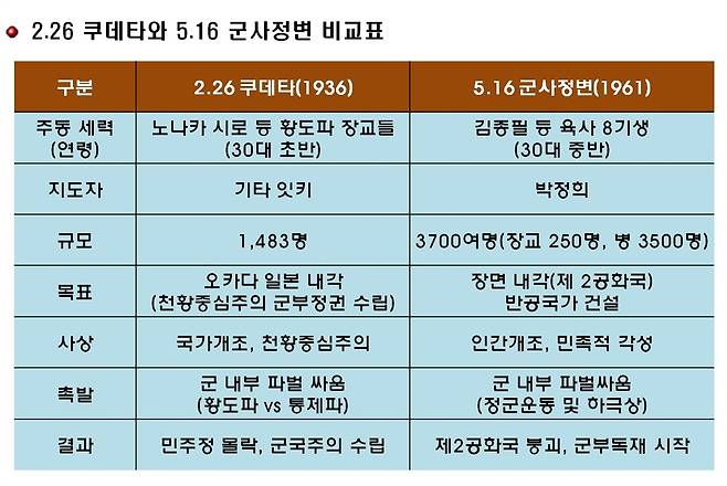 | ▲ 2.26 쿠데타와 5.16 군사정변 비교표. |