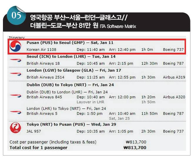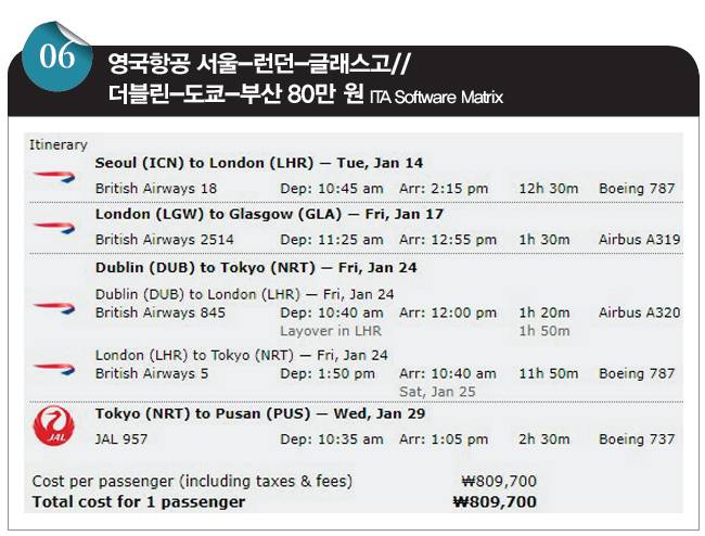 서울에서 출발해 부산으로 돌아와도 됩니다. 다만 서울에서 유럽으로 갈 때나 유럽에서 서울로 올 때 모두 도쿄를 경유할 수 없습니다. 영국항공은 인천국제공항과 런던 히드로공항(LHR) 간 직항 항공편을 운항하고 있으니 이걸 이용하라는 거죠. 직항이 없는 부산에는 서울과 도쿄라는 두 가지 선택지를 주는 거고요. 이는 지난해 말 바뀐 규정입니다. 그 전에는 서울 출발도 얼마든지 도쿄를 경유하고 스톱오버도 할 수 있었습니다.