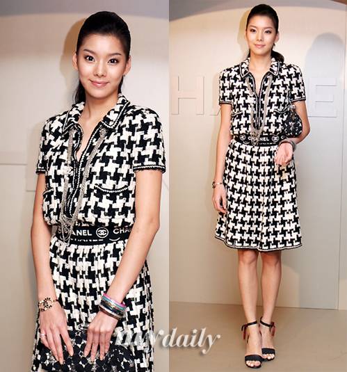 첫 번째 사진은 2006년 9월 1일 서울 용산구 한남동 그랜드 하얏트 호텔에서 열린 '2006 F/W 프레타 포르테 샤넬 패션쇼'에 참석한 황지현. 깔끔하게 넘긴 헤어스타일이 인상적이다.