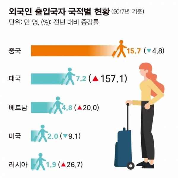 실제 많은 태국인이 90일 체류 한도인 단기 사증으로 입국한 뒤 불법체류 신분으로 마사지 업소에 취업한 것으로 추정돼 정부 당국도 촉각을 곤두세우고 있다. 지난해 기준 국내 불법체류 외국인은 총 35만5126명이다. 이 중 태국인이 13만8591명(39%)으로 가장 많다. 사정 당국에 따르면 이들은 주로 유흥·마사지 업종에 주로 취업한 것으로 추정된다. 법무부가 이와 관련해 태국 이민 당국과 공동대응에 나서기도 했지만, 이들 중 성매매 여성을 모두 걸러내는 것은 불가능에 가까운 상황이다.