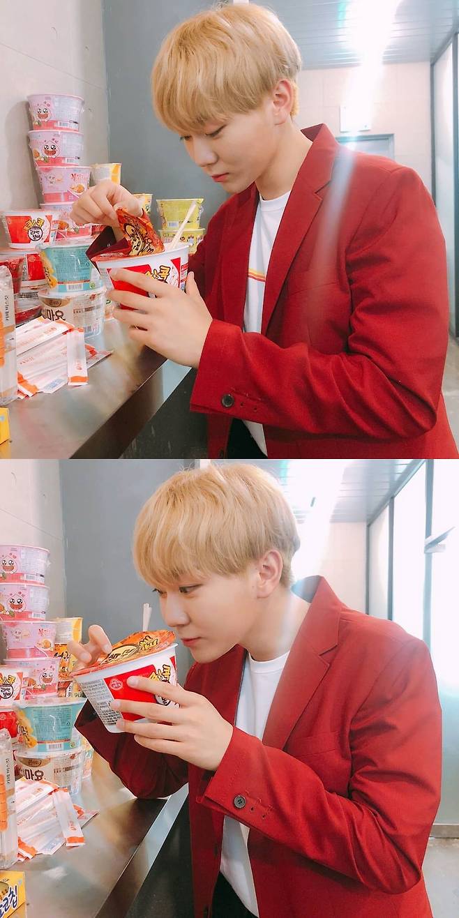 사진 속 승관은 컵라면을 들고 망설이는 표정을 짓고 있다. 이어 라면 용기에 코를 대고 냄새를 맡는 모습을 보여줬다. 라면이 먹고 싶은 건지 내려다보며 시무룩한 표정도 드러낸 그는 '와이파이'라는 곡을 개사한 해시태그로 재치력을 뽐냈다.