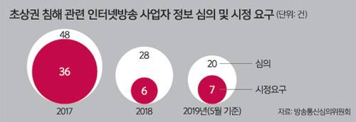 20일 방심위에 따르면 초상권 침해와 관련해 유튜브나 아프리카tv 등 인터넷방송 사업자를 대상으로 심의가 이뤄진 경우는 2017년 48건, 2018년 28건, 올해(5월 기준) 20건이었다. 이 중 시정요구가 이뤄진 것은 각각 36건, 6건, 7건에 그쳤다.