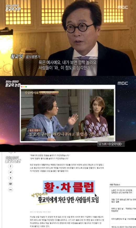 이에 대해 황교익은 "욕은 예사다. 깜짝 놀란다. 얼마나 심각하게 나에 대해 욕을 하는지 모아서 보여줄 수도 있다. 입에 담지도 못할 욕을 한다. 그 사람들을 굳이 차단 안 할 이유가 없는 것"이라고 강조했다.