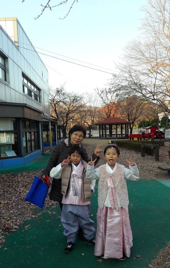 작년 겨울 유치원에서 참여수업이 있던 날 할머니가 함께 해주신 모습입니다. 손자 손녀의 작은 행동 하나하나에 함박웃음을 지며 행복해하는 할머니이십니다. 할머니 곁이 누구보다 편하고 좋은 꼬마 녀석들이고요. 직장맘인 딸을 대신해 고생해 주시는 할머니와 할머니를 잘 따르는 아이들에게 모두 고마운 마음입니다.