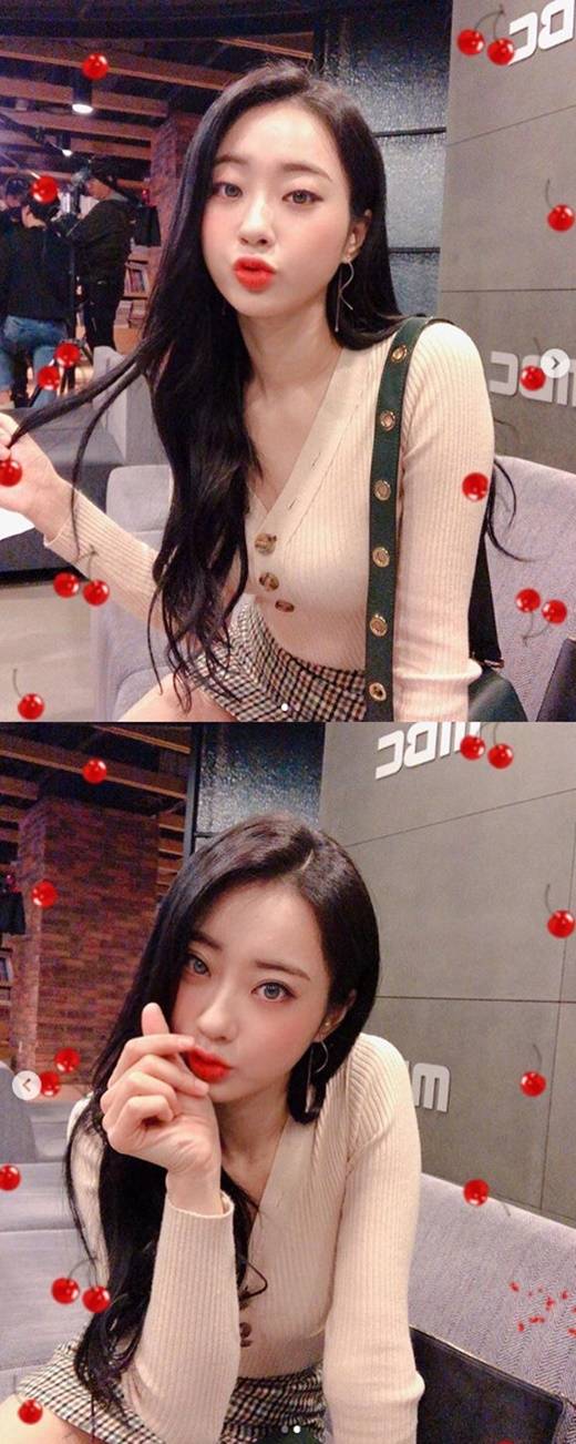 공개된 사진 속 경리는 누드톤의 밀착 상의에 체크 무늬 미니 스커트를 입고 포즈를 취했다. 긴 흑발과 화려한 화장에 빛나는 경리의 섹시 미모가 돋보인다.
