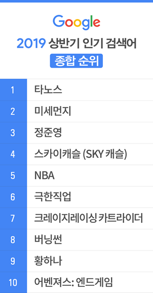 구글은 이 같은 내용이 담긴 '2019년 상반기 한국 인기 검색어 순위'를 27일 발표했다.