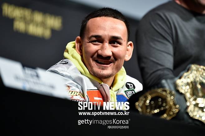 맥스 할로웨이(27)는 지난 2일(이하 한국 시간) 미국 라스베이거스에서 열린 UFC 236 프레스 콘퍼런스에 참석했다. 오른 어깨에 맨 페더급 챔피언벨트와 노란 후드 티, 항공점퍼를 겹쳐 입은 자유로운 패션 스타일이 묘한 조화를 이뤘다.