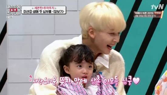 2월 24일 방송된 tvN ‘내손안에 조카티비’ 2회에서는 세븐틴 정한 민규와 뚜아뚜지 어수아 어수지의 첫만남이 그려졌다.