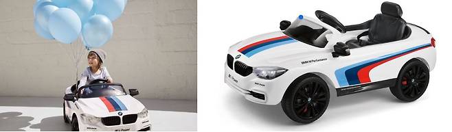 머리에 피도 안 마른 내 자식을 BMW M4 오너로 키울 수 있다. 과격한 생김새와 달리 속은 전기 모터 품은 친환경 전동차. 최고속도 시속 4㎞/h 성능으로 1~2시간 동안 달릴 수 있다. 다른 아이들 기죽일 우렁찬 엔진 사운드를 스피커로 구현하며, MP3 포트를 달아 쾌적한 드라이빙을 즐길 수 있다. 값은 45만 원(할인가 36만 원). 자매품 ‘BMW i8 라이드 온’도 있다.