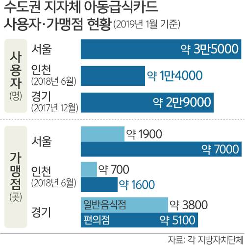 급식카드 가맹점이 대부분 술·담배 등 금지품목을 팔고 있는 편의점에 몰려 있는 것도 부정 사용을 부추기는 원인으로 꼽힌다. 현재 서울시와 경기도의 가맹점 1만7800여곳 중 1만2100여곳이 편의점으로 전체 가맹점 세 군데 중 2곳꼴이다. 인천시도 지난해 6월 기준 가맹점 2316곳 중 70%에 육박하는 1600곳이 편의점인 것으로 집계됐다.