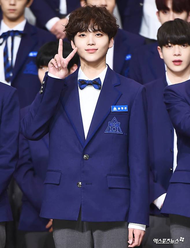 [엑스포츠뉴스 윤다희 기자] 30일 오후 서울 여의도동 63컨벤션센터에서 열린 Mnet 예능프로그램 ‘프로듀스X 101’에 참석한 연습생 송형준이 포토타임을 갖고 있다.