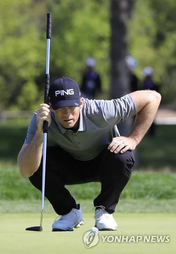epa07575641 Marty Jertson of the US lines up his putt on the twelfth hole during the first round of the 2019 PGA Championship at Bethpage Black in Farmingdale, New York, USA, 16 May 2019. The Championship runs from 16-19 May. EPA/TANNEN MAURY