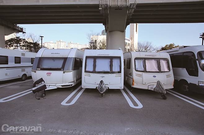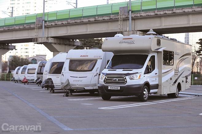 카라반은 엄연히 자동차 번호판을 달고 등록된 승합차로 구분되지만 기존의 주차 라인에 세우는 자체가 문제가 되고 있다. 아무리 오래되고 기술이 좋은 베스트 드라이버라도 기존 주차장 구획 내에 RV를 세우는 것은 너무나 큰 위험 부담이 된다. RV 전용 주차장의 필요성은 주차 구획 사이즈의 변화를 요구하기에 충분하다. 미국 CLASS C 형태의 모터홈이라면 더욱 큰 주차 구획을 요구하게 된다.