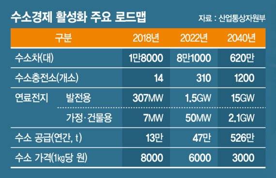 이번 로드맵에는 수소차·연료전지를 양대 축으로 '수소경제 선도국가'로 가겠다는 비전이 담겨 있다. 올해부터 2040년까지의 큰 그림이다.
